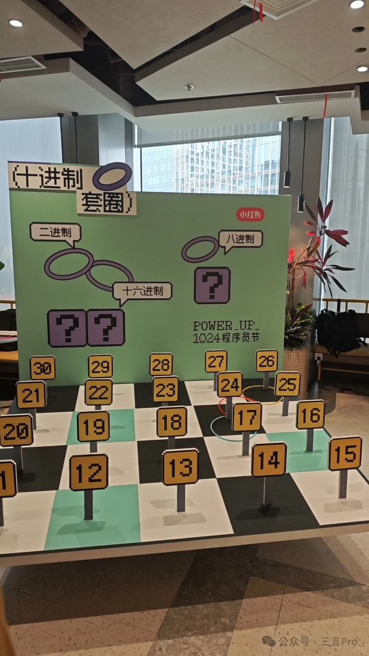除了专属1024礼盒,小红书提供了很多轻松小游戏,比如“清扫bug球道”、“十进制套圈”,到处都是代码元素。完成各种挑战收集debug印章,还能进行抽奖。